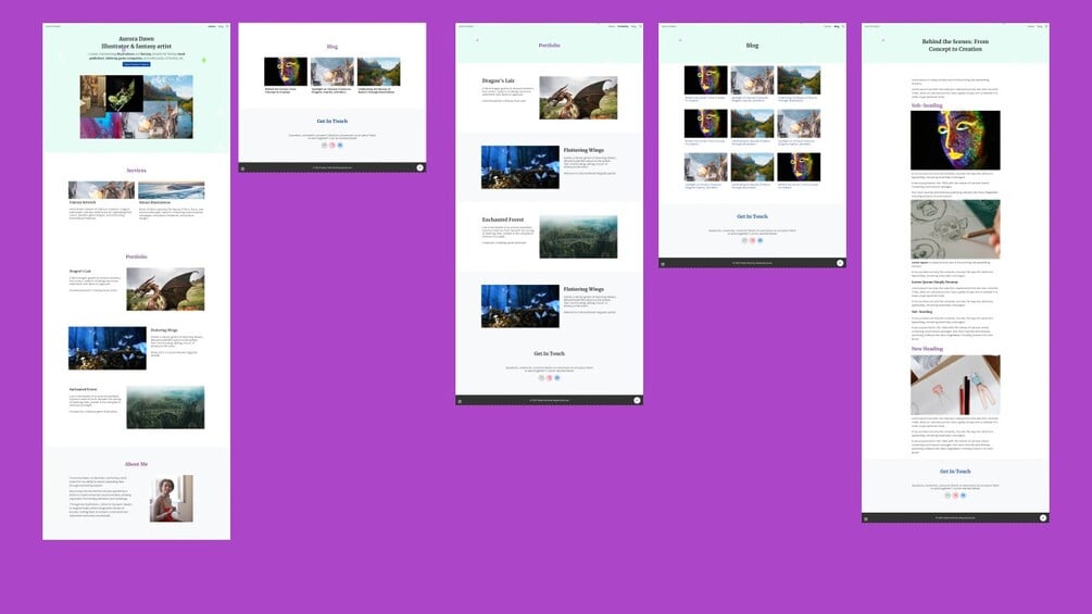 Home, Portfolio, Blog post list, and Single blog post pages with each page dedicated to providing crucial information to your website visitors.
